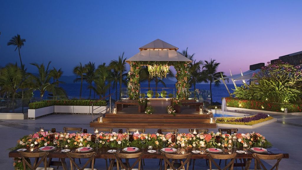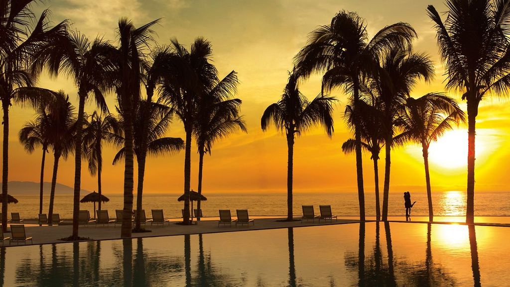 Set on Camarones Beach along BahÌa de Banderas, this upscale all-inclusive resort is 3 km from the MalecÛn esplanade and 6 km from the Licenciado Gustavo DÌaz Ordaz International Airport. The polished rooms offer free Wi-Fi, flat-screen TVs, iPod docks, safes, minibars, and terraces or balconies. Upgraded rooms provide bay views or swim-up pool access. Club rooms come with private-lounge access. Suites offer terraces with hot tubs and/or private plunge pools. Green fees at 3 off-site golf courses are included, as are meals and drinks at 8 restaurants and 4 bars. Amenities consist of an infinity pool, a gym, a spa and a hot tub.