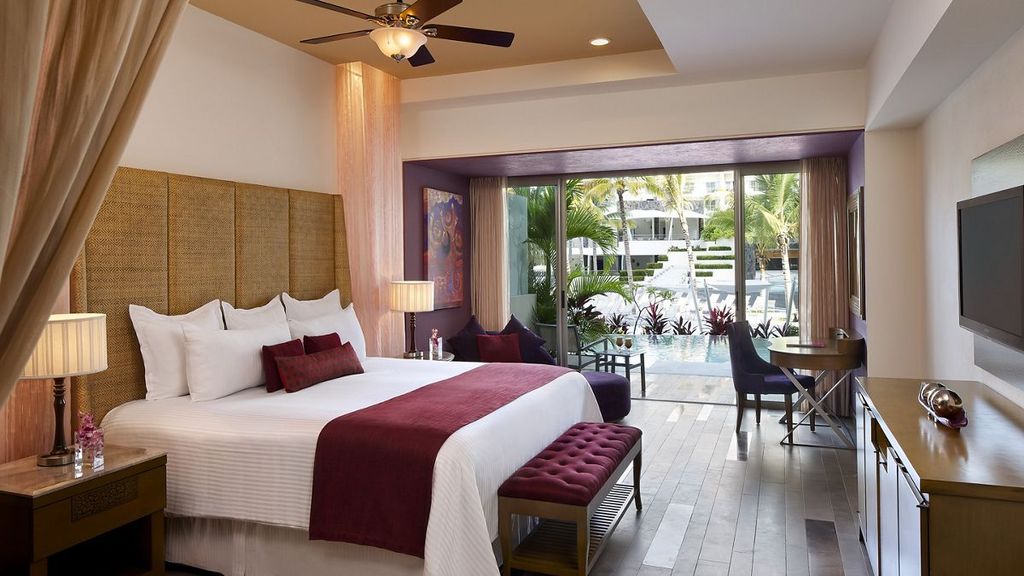 Situated on the golden beaches of the Pacific coast within walking distance of the famous El Malecón boardwalk, this vibrant oceanfront AAA Four Diamond resort provides adults 24/7 access to buzzing nightlife, non-stop entertainment and Unlimited-Luxury®. Free flow access to Now Amber Puerto Vallarta next door enhances the luxury experience. The polished rooms offer free Wi-Fi, flat-screen TVs, iPod docks, safes, minibars, and terraces or balconies. Upgraded rooms provide bay views or swim-up pool access. Club rooms come with private lounge access. Suites offer terraces with hot tubs and/or private plunge pools. Green fees at 3 off-site golf courses are included, as are meals and drinks at 8 restaurants and 4 bars. Amenities consist of an infinity pool, a gym, a spa, and a hot tub.